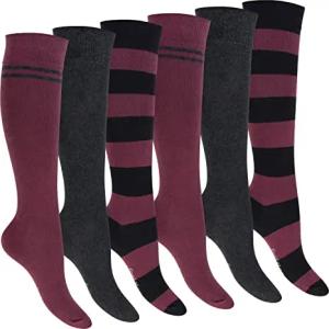 Damen Kniestrümpfe geringelt (6 Paar) - Bordeaux 35-38