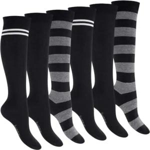 Damen Kniestrümpfe geringelt (6 Paar) - Schwarz 39-42