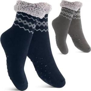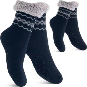 Damen und Herren Winter Haussocken (2 Paar) Kuschelsocken - Anthra-Navy 35-38