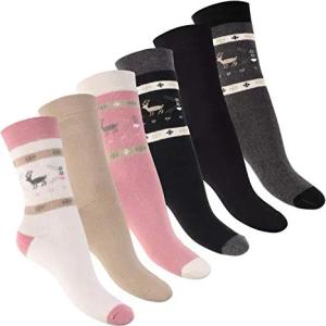 Damen Wintersocken (6 Paar) Warme Vollfrottee Socken mit Thermo Effekt - Schwarz Mix 35-38