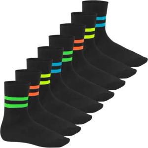 Herren & Damen Baumwollsocken (8 Paar) Socken im Neon Look - Sport Schwarz 43-46