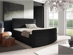 Boxspringbett Schlafzimmerbett AMBRA 160x200cm Stoff Elisa Velvet Schwarz