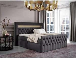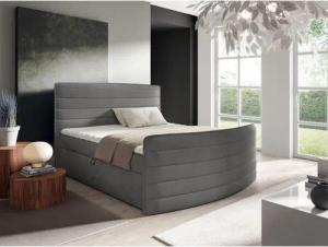 Boxspringbett Schlafzimmerbett AMBRA 180x200cm Stoff Elisa Velvet Dunkelgrau