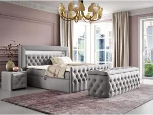 Boxspringbett Schlafzimmerbett MABEL 180x220cm Stoff Brooklyn Fog