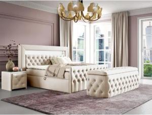 Boxspringbett Schlafzimmerbett ERNESTO Nr.4 180x200cm in Elisa Velvet Cremeweiß