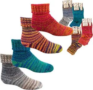 2 Paar wunderschöne, warme, kuschelige Kindersocken mit Wolle im Skandinavien-Style m zusätzlicher Garantie (Gelb/Lila, 23/26 = 3-4 Jahre)