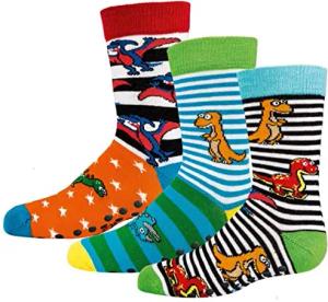 3 Paar Mädchen/Jungen Stopper-ABS Socken, verschiedene Muster mit Anti-Loch-Garantie (Dinos, eu_footwear_size_system, toddler, men, numeric_range, medium, numeric_23, numeric_26)