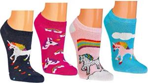 Ökotex Kinder Sneakersocken, handgekettelt, 6 Paar für Mädchen/Jungen, weiche Baumwolle, viele Motive (35-38, Pferdesocken Romantik)