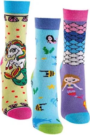 Kinder Öko Socken 6 Paar für Jungen/Mädchen,Schadstoffgeprüft, in vielen Mustern (Meerjungfrau, 19-22)