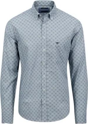 Hemd aus Baumwolle mit floralem Allover-Print und Button-Down-Kragen Crystal Blue / 3XL