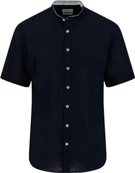 Kurzarm Hemd aus Leinen-Baumwoll-Mix mit Stehkragen Navy/S