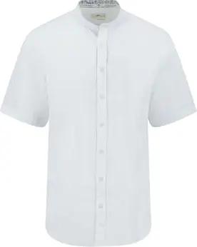 Kurzarm Hemd aus Leinen-Baumwoll-Mix mit Stehkragen White / 4XL