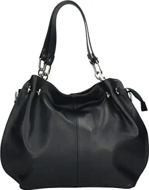 Damen Schultertasche Echtleder Magnetverschluss 31x18x12 cm Schwarz