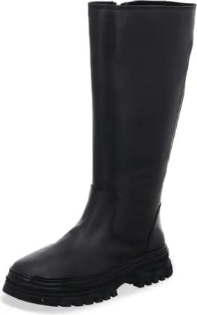 Damen Stiefel Plateau Langschaft aus Leder mit losen Einlagen 390005-02, Größe:37 EU, Farbe:Schwarz