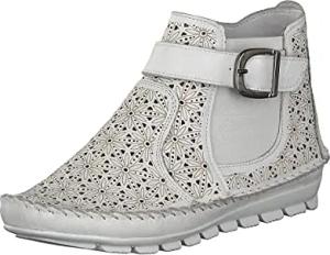 Damen Stiefelette Leder Cutouts floral Muster 382019-19, Größe:37 EU, Farbe:Weiß