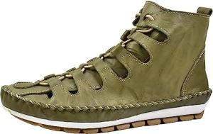 Damen Stiefelette sportlicher Plateau Schnürboot aus Leder 343859-02, Größe:42 EU, Farbe:Grün