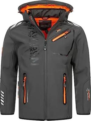 ROYAUTE Men Softshell Jacke Herren Wasserdicht Jacke mit Kapuze Outdoor Windjacke Taktische Jacke Brandiing- Production (Small, Grau/Orange)