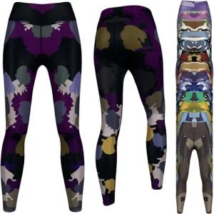 Camo Leggings sehr dehnbar Leggings für Sport, Yoga Gymnastik, Training, Tanzen & Freizeit, 40/L, GYM-8037 Schwarz-Lila