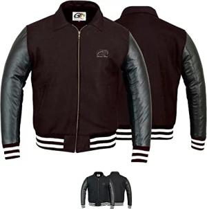 Collegejacke Blouson Wolljacke varsity College Jacke Lederärmel Retro 56 Dunkelbraun