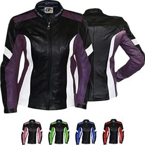 Damen Lederjacke Motorradjacke 44 Schwarz/Lila/Weiß