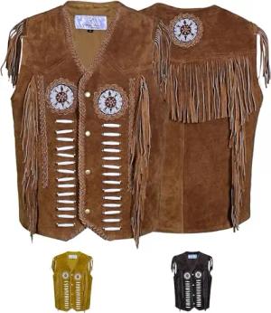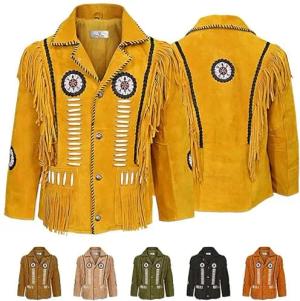Herren Indianer Westernjacke Reiter Jacke Western-Lederjacke Tracht jacke, 52, Ocker