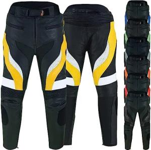 Herren Motorradhose Motorrad Biker Racing Lederhose Gelb/Schwarz, Größe:54