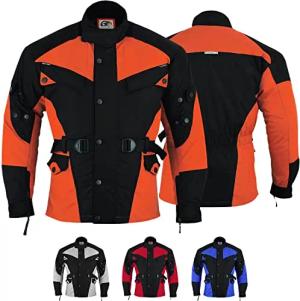 Herren Motorradjacke aus Textil mit 4 CE-Protektoren - Winddicht Lange Jacke mit Kombizipper aus 4 Schichten - Abnehmbar & Washbar Thermofutter - 8 Taschen protektorenjacke Orange - 52