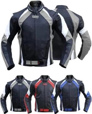 Herren Motorradjacke Motorradlederjacke Lederjacke mit Protektoren Rot Blau & Grau 56 Grau