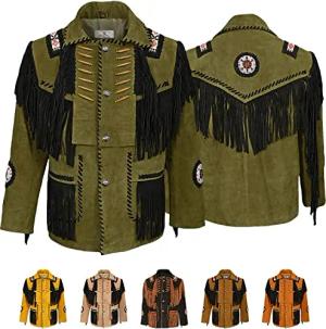 Herren Indianer Westernjacke Reiter Jacke Western-Lederjacke Tracht jacke, 56, Schwarz