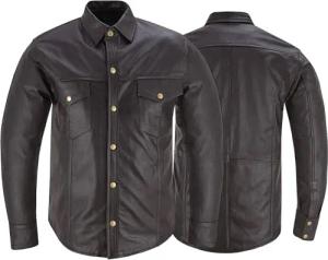 Lederhemd Herren Motorradhemd Lederjacke 3XL Dunkelbraun
