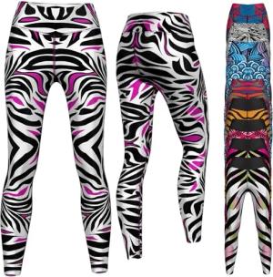 Leggings Sehr dehnbar Fitness Sport Yoga Gymnastik Training Tanzen Freizeit, 38/M, GYM-8043 Schwarz Weiß Rosa