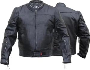 Motorrad Lederjacke Motorradjacke Cruiser biker Jacke Schwarz, Größe:52/L