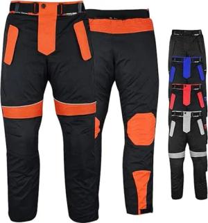 Motorradhose Herren mit 2CE Protektoren - Winddicht Biker Quad textil Hosen - Wash- & Abnehmbar Thermo-Futter, Kombi-Reißverschluss, Elastischer Bund - aus 4 Schichten & 2 Zipper Taschen Orange - 56