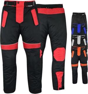 Motorradhose Herren mit 2CE Protektoren - Winddicht Biker Quad textil Hosen - Wash- & Abnehmbar Thermo-Futter, Kombi-Reißverschluss, Elastischer Bund - aus 4 Schichten & 2 Zipper Taschen Rot - 60