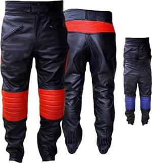 Motorradhose Motorrad Biker Lederhose Rindsleder Leder Hose Schwarz, 50/M, Rot
