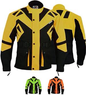 Motorradjacke Herren mit CE1-Protektoren - 5 Taschen, aus 4 Schichten, Winddicht, Reflektierend, lange Jacke - Abnehmbar & Washbar Thermofutter - Neonfarben Extra Sichtbarkeit - Gelb - XL