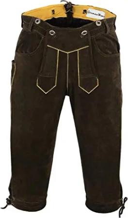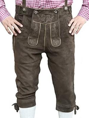 Trachten Lederhose Kniebundhose Trachtenhose Hose mit Hosenträger, Größe:56, Farbe:Dunkelbraun