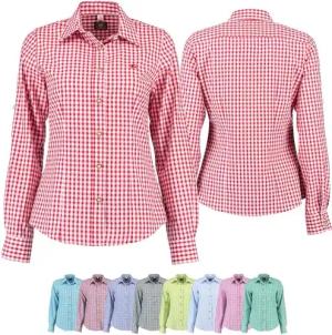 Trachtenbluse für Trachten Lederhosen Bluse Trachtenmode kariert, 38, Rot