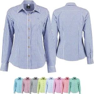 Trachtenbluse für Trachten Lederhosen Bluse Trachtenmode kariert, 40, Dunkelblau
