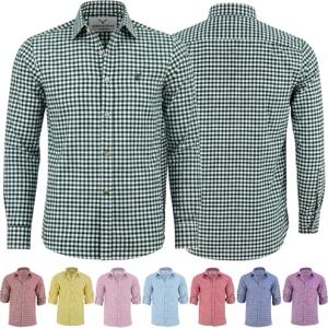 Trachtenhemden für Herren mit Langen Ärmeln, klassisches Karomuster, hochwertige bayerische Mode mit Hirsch-Stickerei und kardieten Ärmeln Dunkelgrun- Small