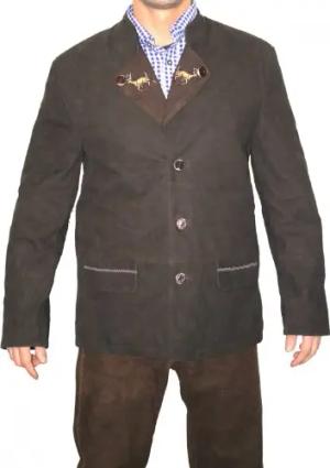 Trachtenjacke Trachten Lederjacke Jacke Janker aus Ziegenleder Dunkelbraun, Größe:50