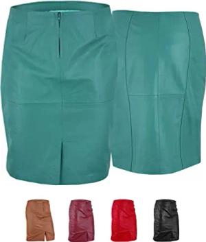 Trendiger Midi Lederrock aus Lammnappa Business Rock Echtleder 36, Grün
