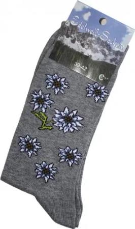 Unisex Trachtensocken Edelweiß-Socken Blütenmuster Kurze socken, 35-38, Grau
