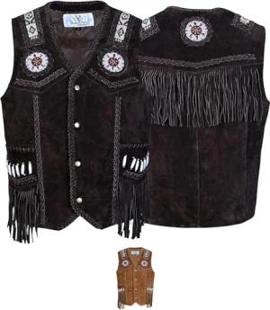 Western Lederweste Tracht Weste Reiter weste Lederkutte 58 Dunkelbraun