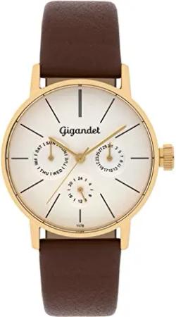 Herren-Armbanduhr Quarz Dualzeit Analog mit Lederarmband braun Minimalism G22-004