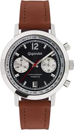 Herren-Armbanduhr Chronograph Quarz Analog Leder braun Tramelan G10-006