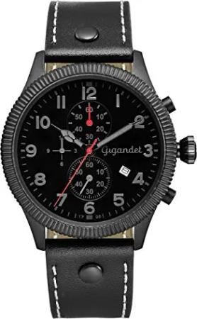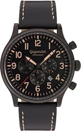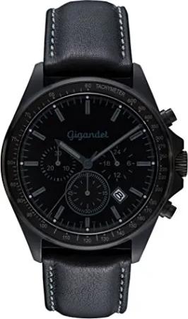 Herrenuhr Chronograph Quarz Analog Leder schwarz G50-002