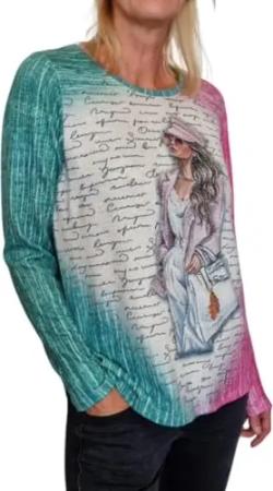Langarmshirt im Farbverlauf mit strassbesetzten Frontprint Größe S
