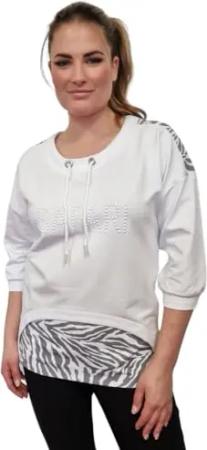Langarmshirt mit Rippbündchen und Strassbesatz Größe XL, Farbe wollweiß