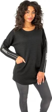 Langarmshirt mit Rippbündchen und Strassbesatz Größe L, Farbe schwarz